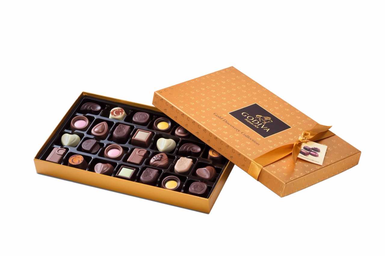 The 28-piece Godiva Gold Discovery collection of ganaches, pralines, mousses and caramels includes seven new recipes and nine restyled favourites. Ganache flavours include passion fruit and pink pepper, white chocolate and bourbon vanilla, intense coffee, raspberry rose, and 85% dark chocolate.