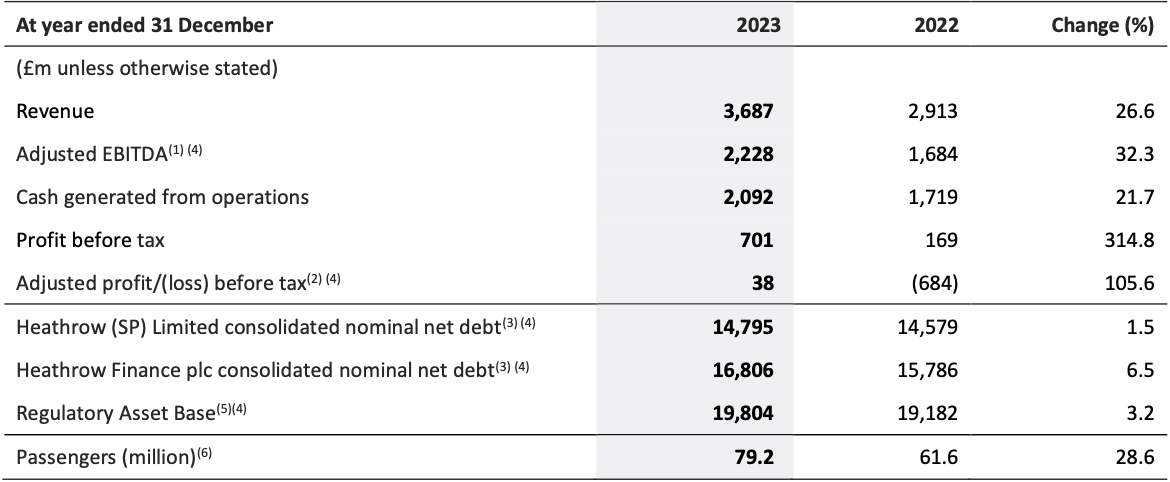 Group revenue increased by +26.6% to £3,687 million (US$4,657 million). Adjusted EBITDA rose by +32.3% to £2,228 million (US$2,814 million) while the company returned to adjusted pre-tax profit of £38 million (US$48 million) after three years of losses (£684 million in 2022).