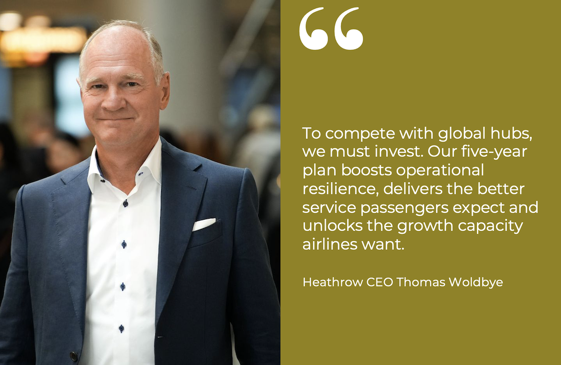 “To compete with global hubs, we must invest. Our five-year plan boosts operational resilience, delivers the better service passengers expect and unlocks the growth capacity airlines want with stretching efficiency targets and a like-for-like lower airport charge than a decade ago.