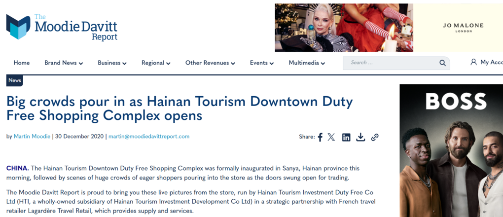 Hainan Tourism Investment Duty Free (HTDF) is a subsidiary of Hainan Tourism Investment Group, a key provincial state-owned enterprise. HTDF operates the 95,000sqm HTDF Mall in downtown Sanya, Hainan.