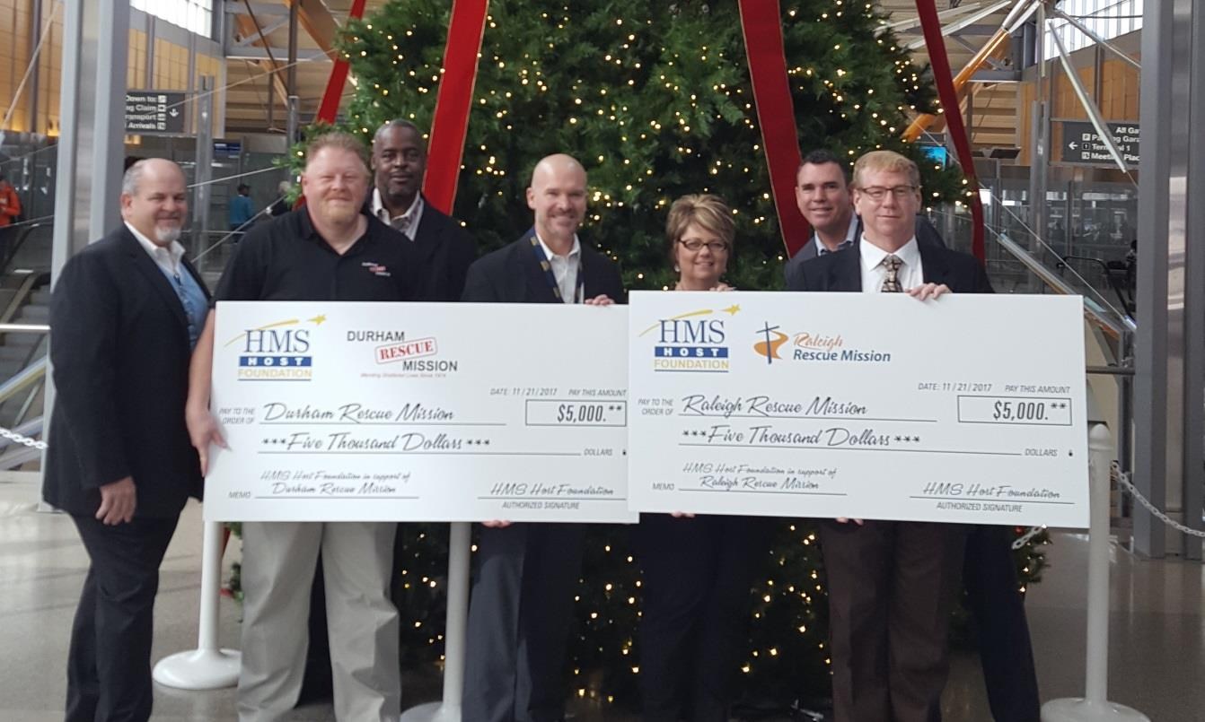 Yesterday (21 October), representatives of HMSHost and Raleigh-Durham International Airport presented grants to the Durham and Raleigh Rescue Missions.