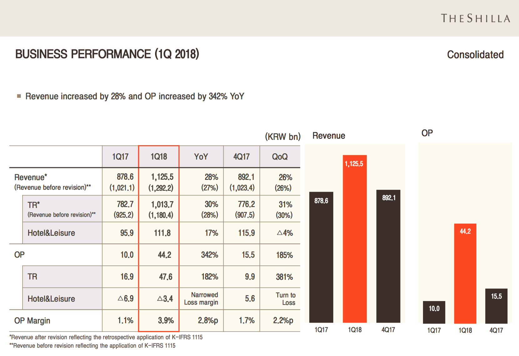 SOUTH KOREA. Hotel Shilla’s travel retail division posted a +30% surge in revenues for the first quarter of 2018, to KRW1,013.7 billion (US$950 million), while operating profit in the division surged by +182% year-on-year, hitting KRW47.6 billion (US$44.5 million).