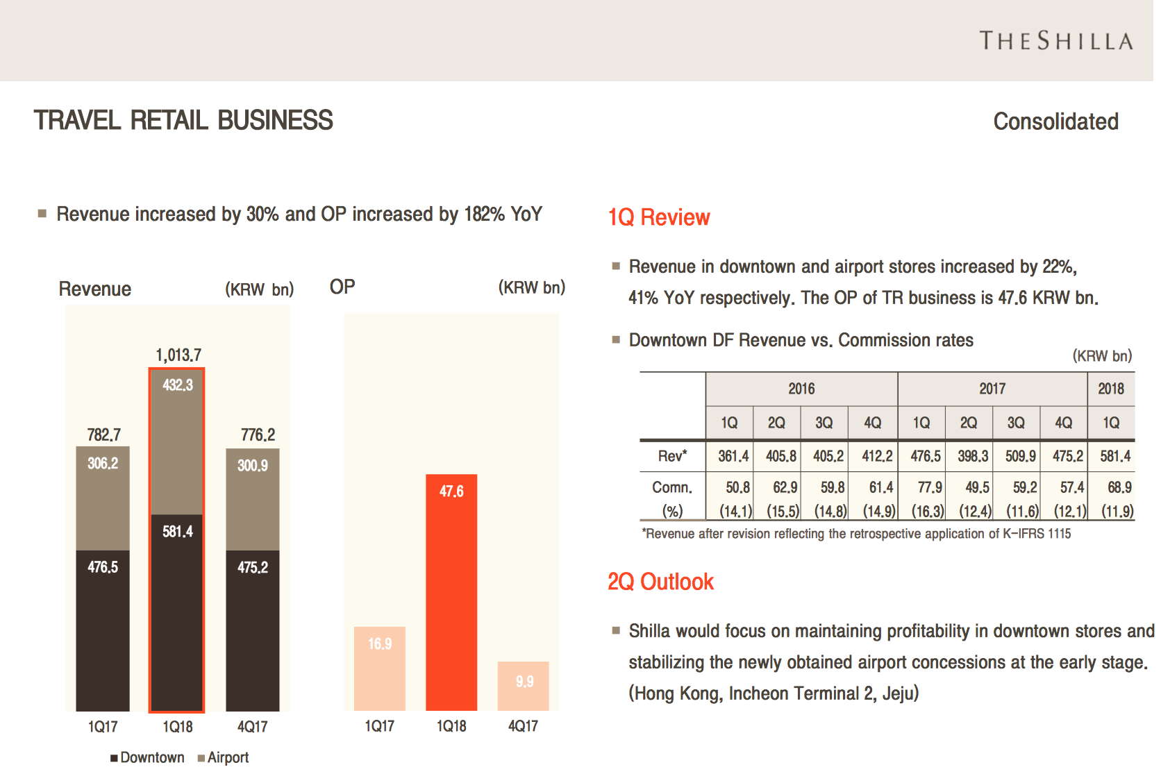 Commenting on the outlook for Q2 2018, Shilla said it would “focus on maintaining profitability in downtown stores and stabilising the newly obtained airport concessions (Hong Kong, Incheon Terminal 2, Jeju) at the early stage.”