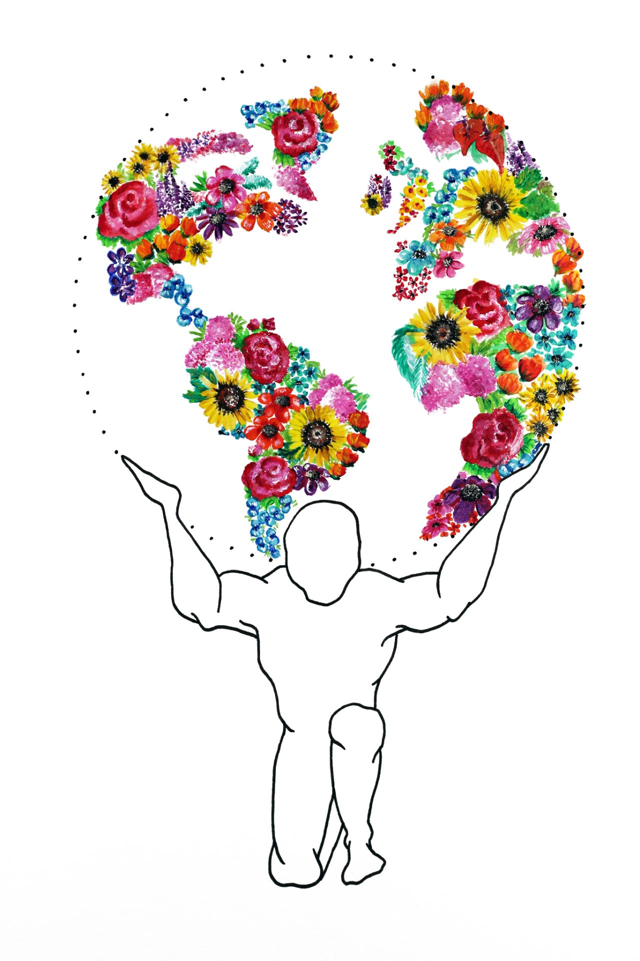 “This piece of original art shows the natural beauty of our planet and at the same time demonstrates the burden that we must all bear to hold it together.”