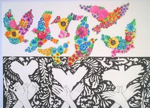 Sophie works primarily in ink but often incorporates vivid acrylics in an emotive manner; highlighting the use of negative space and expressionism.