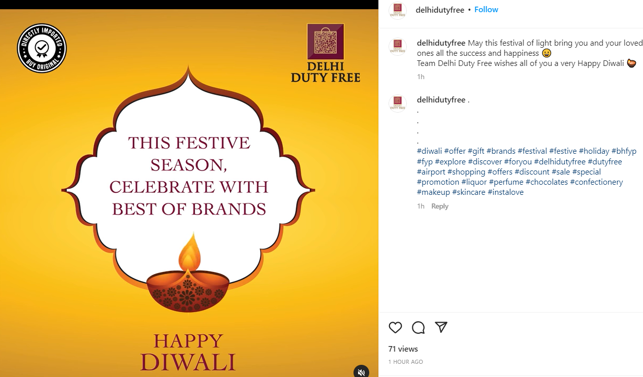 The offer is available to passengers in Delhi, Dubai, Mumbai, Singapore and Thailand airports. Shoppers in Delhi and Mumbai can also explore a new interactive experience where they can take a Diwali-themed photograph to make it a moment to remember.