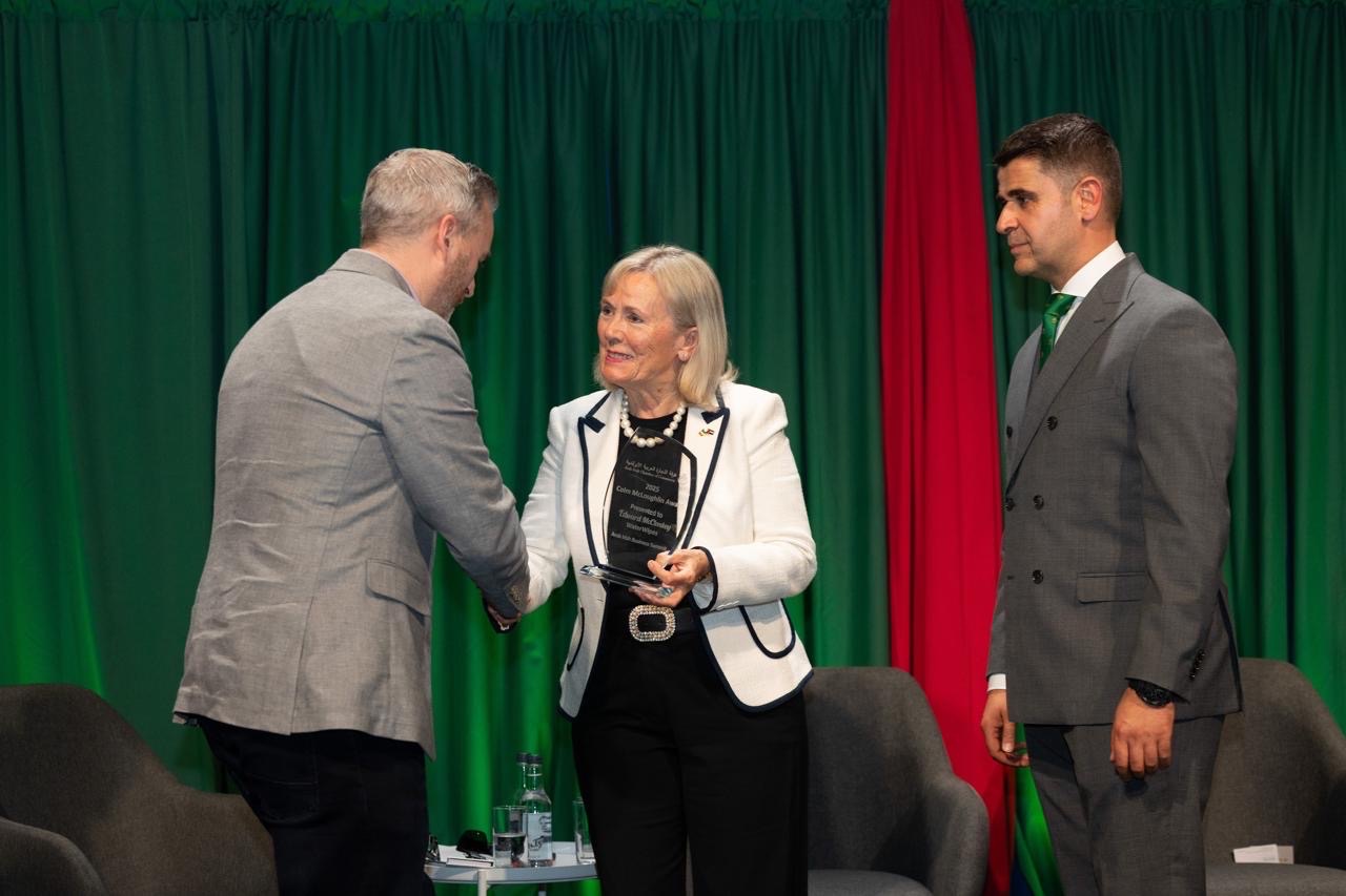 IRELAND/UAE. The Arab-Irish Business Summit 2025, held on 18 September at Dublin’s Mansion House, saw the inaugural Colm McLoughlin Award for Excellence in Entrepreneurship presented by McLoughlin’s wife Breeda.
