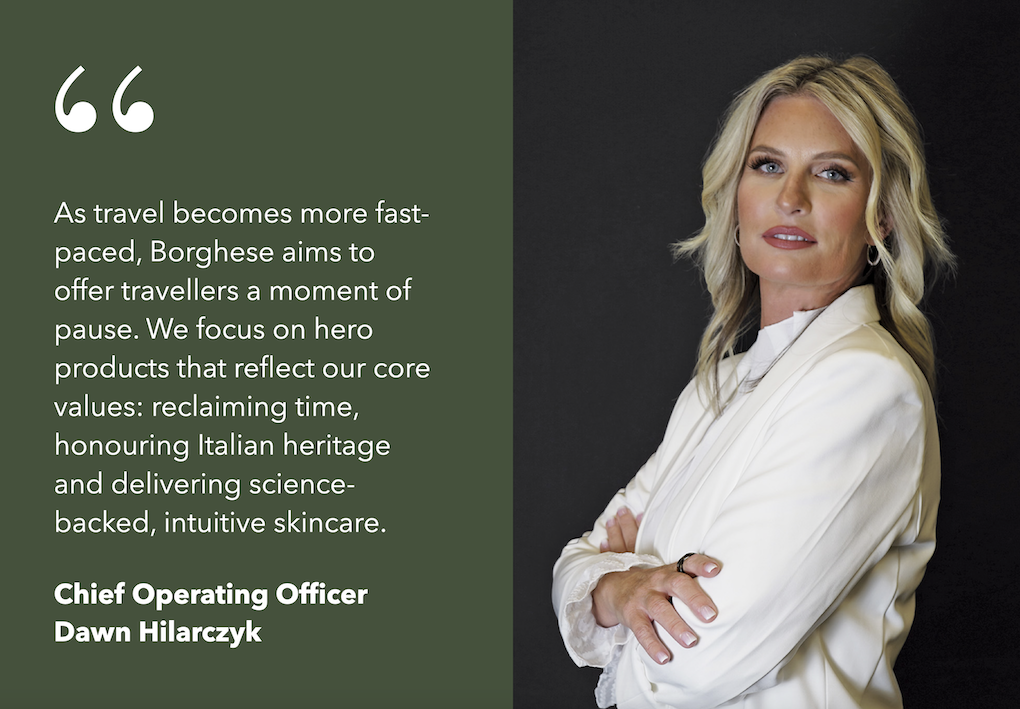 Dawn Hilarczyk: Borghese is rooted in Italian culture, offering the gift of time and simplicity through intuitive, sensorial skincare.