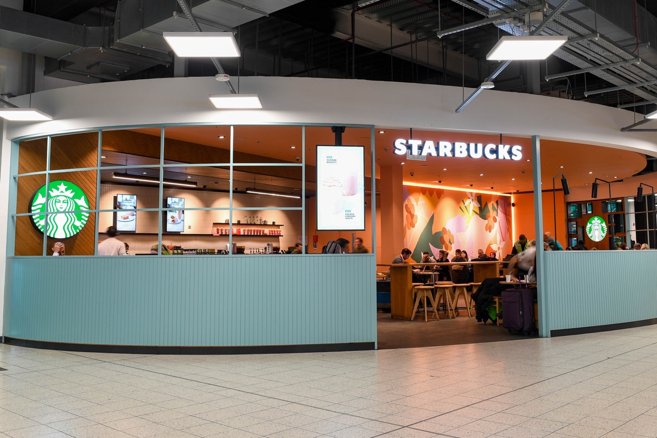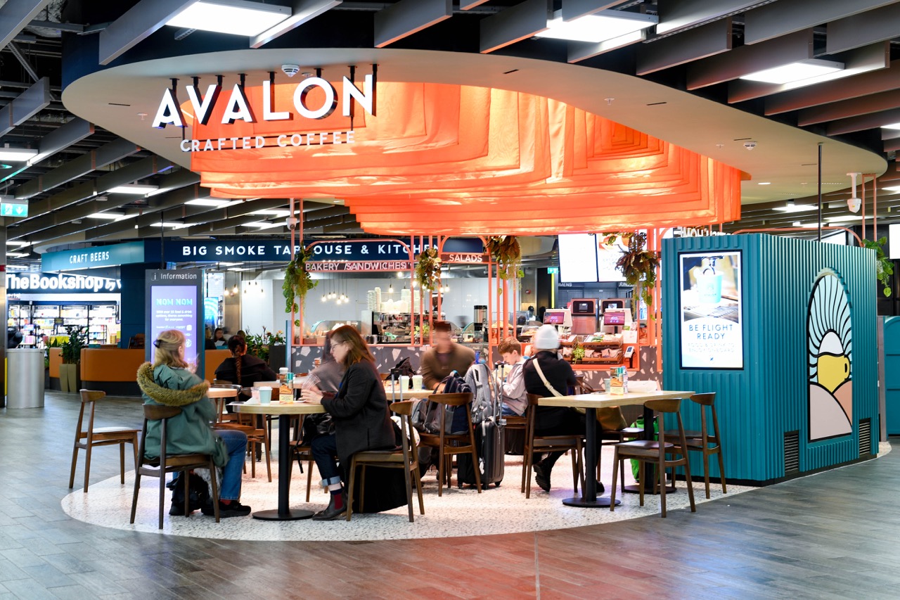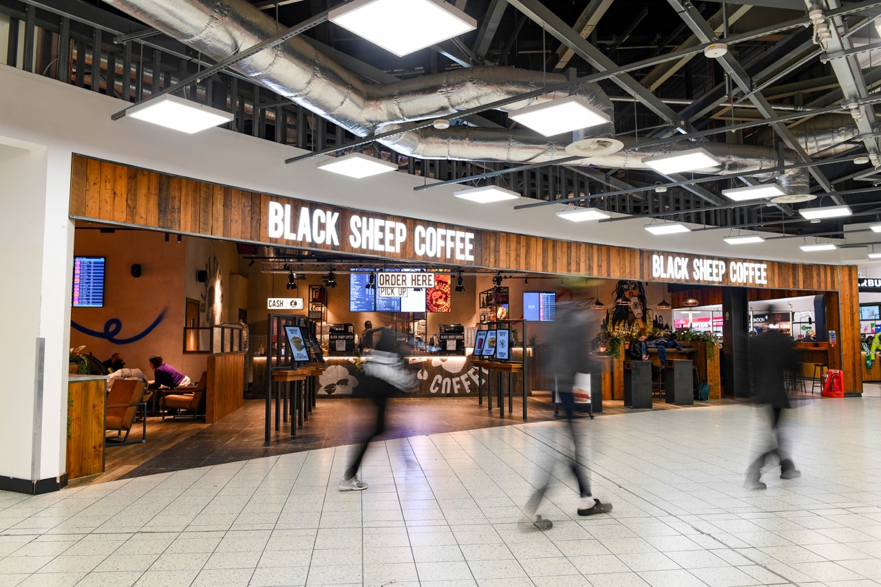 Other openings in recent months include coffee house chain Black Sheep Coffee’s first awarded UK airside unit, with a funky design featuring reclaimed timber, black metalwork, corrugated-metal wall cladding with a rusted effect finish, plus neon feature lights and vibrant wall art.