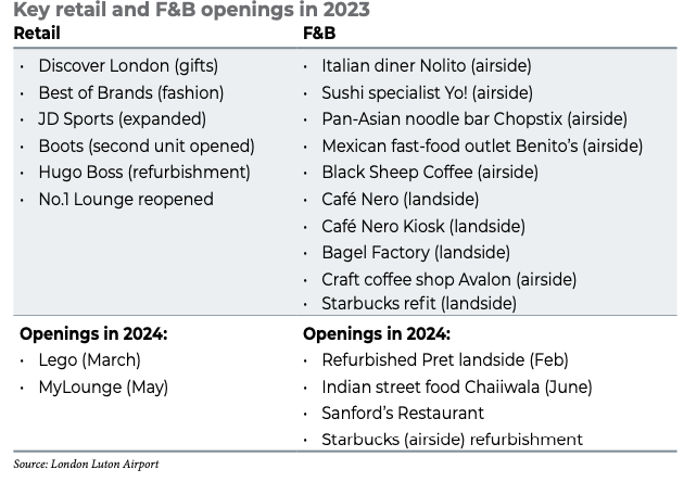 This is just one of several dining and retail contract opportunities in the pipeline. These include two airside and two landside F&B concessions (one of them the bar noted above); two travel essentials concessions, one covering the news category (airside plus landside) and the other in convenience (landside); plus one speciality retail concession airside. These should go into operation in 2025.