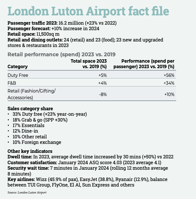 Compared to pre-pandemic 2019, space in duty free has been expanded by +5% but spend per passenger in 2023 leapt by +56%.