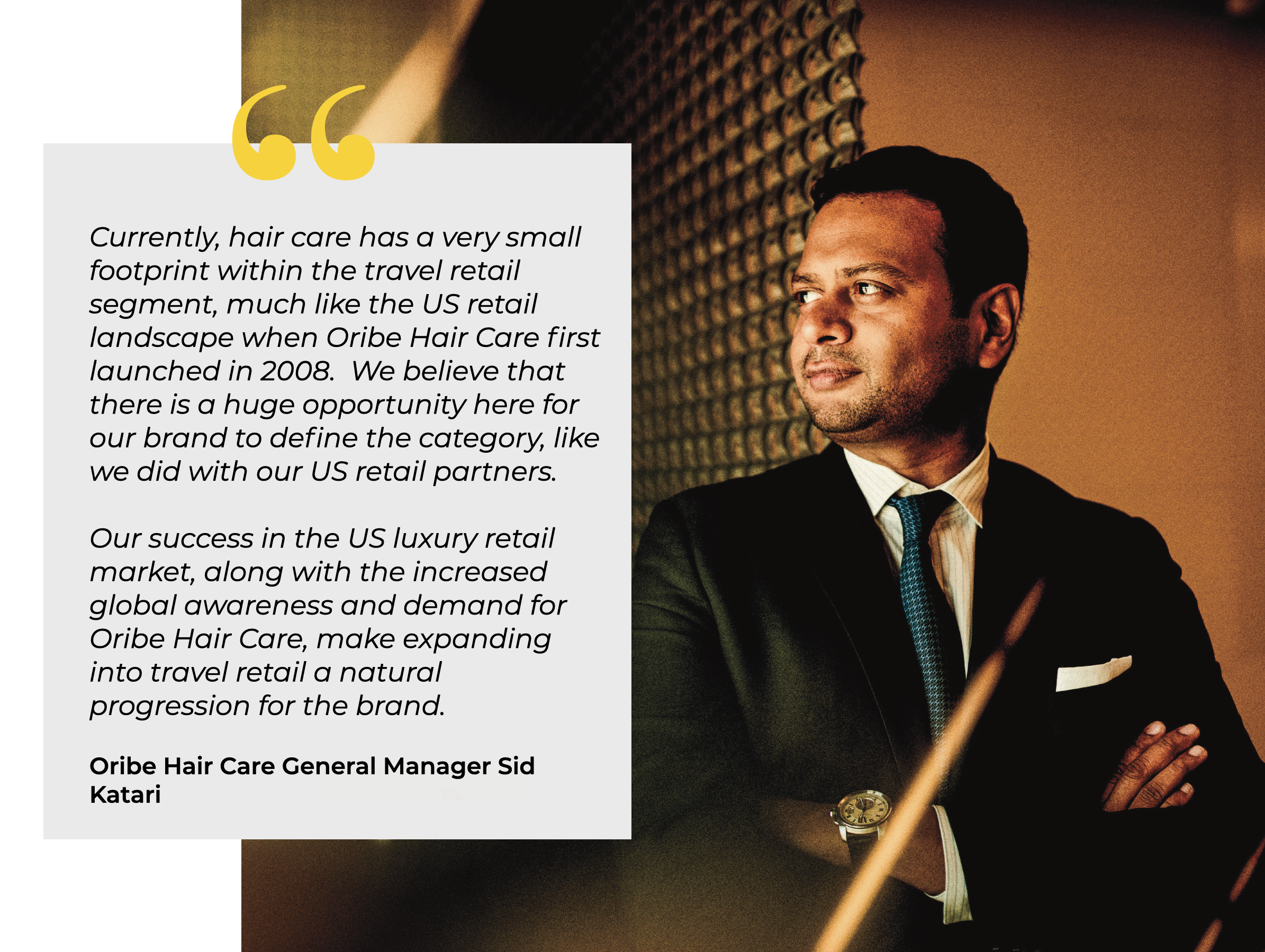 “Currently, hair care has a very small footprint within the travel retail segment, much like the US retail landscape when Oribe Hair Care first launched in 2008,” says Katari, who is confident that Oribe will achieve a similar trajectory in travel retail. “We believe that there is a huge opportunity here for our brand to define the category in travel retail, like we did with our US retail partners.”