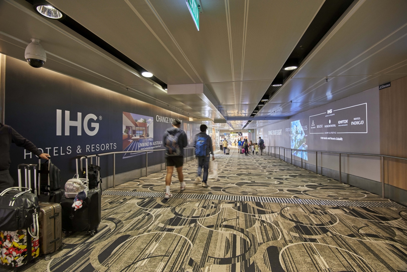 The 35-metre Immersive Walkway has been first harnessed by InterContinental Hotels Group. Passengers arriving in Terminal 1 are greeted by advertising for the hotels group on both sides of the walkway to the baggage claim area and Jewel Changi Airport.