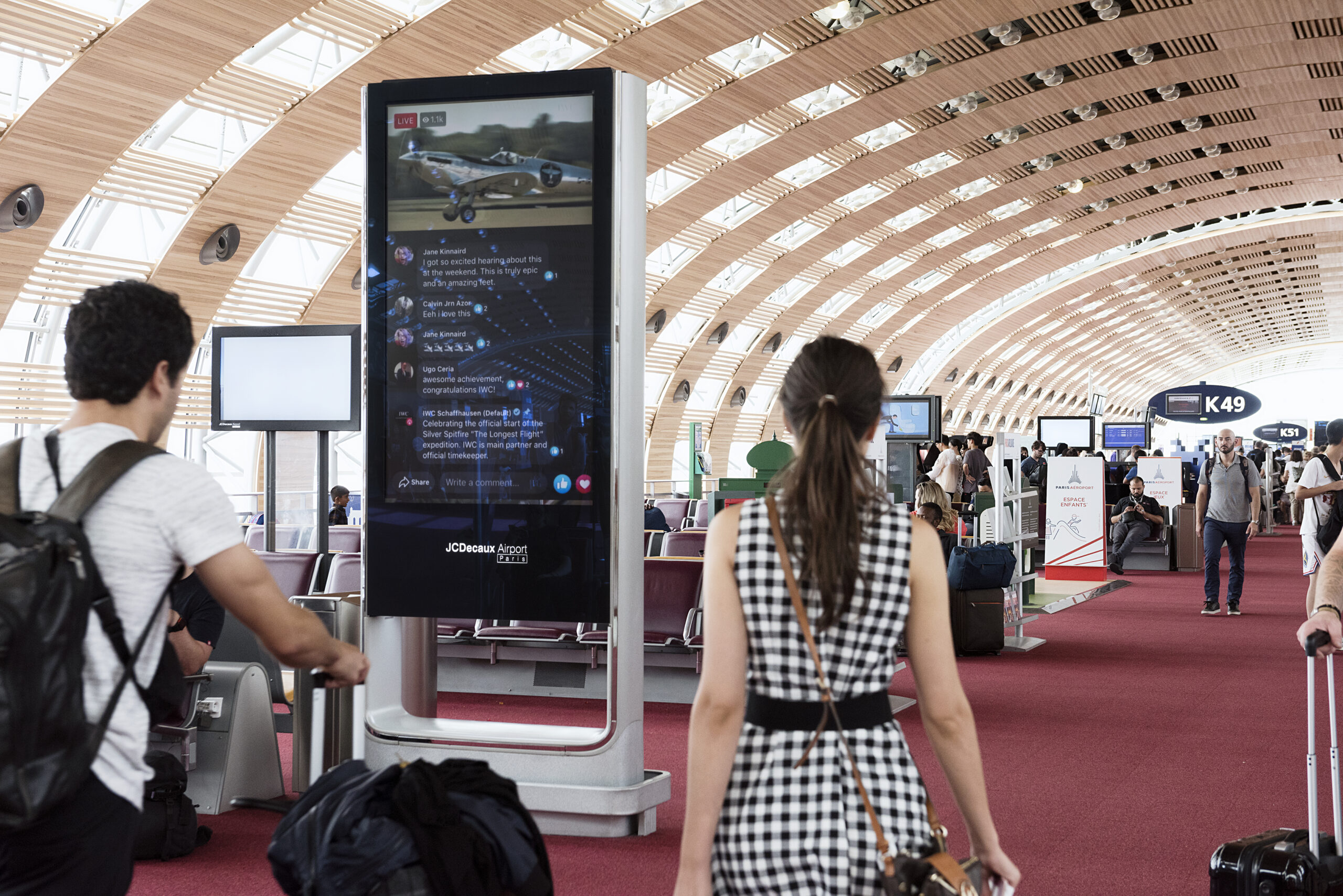 Thanks to a partnership between JCDecaux, IWC Schaffhausen and Facebook, 12 70-inch digital screens in the Parisian airport broadcasted live coverage of what JCDecaux said was a world first combining Facebook Live technology and outdoor advertising.