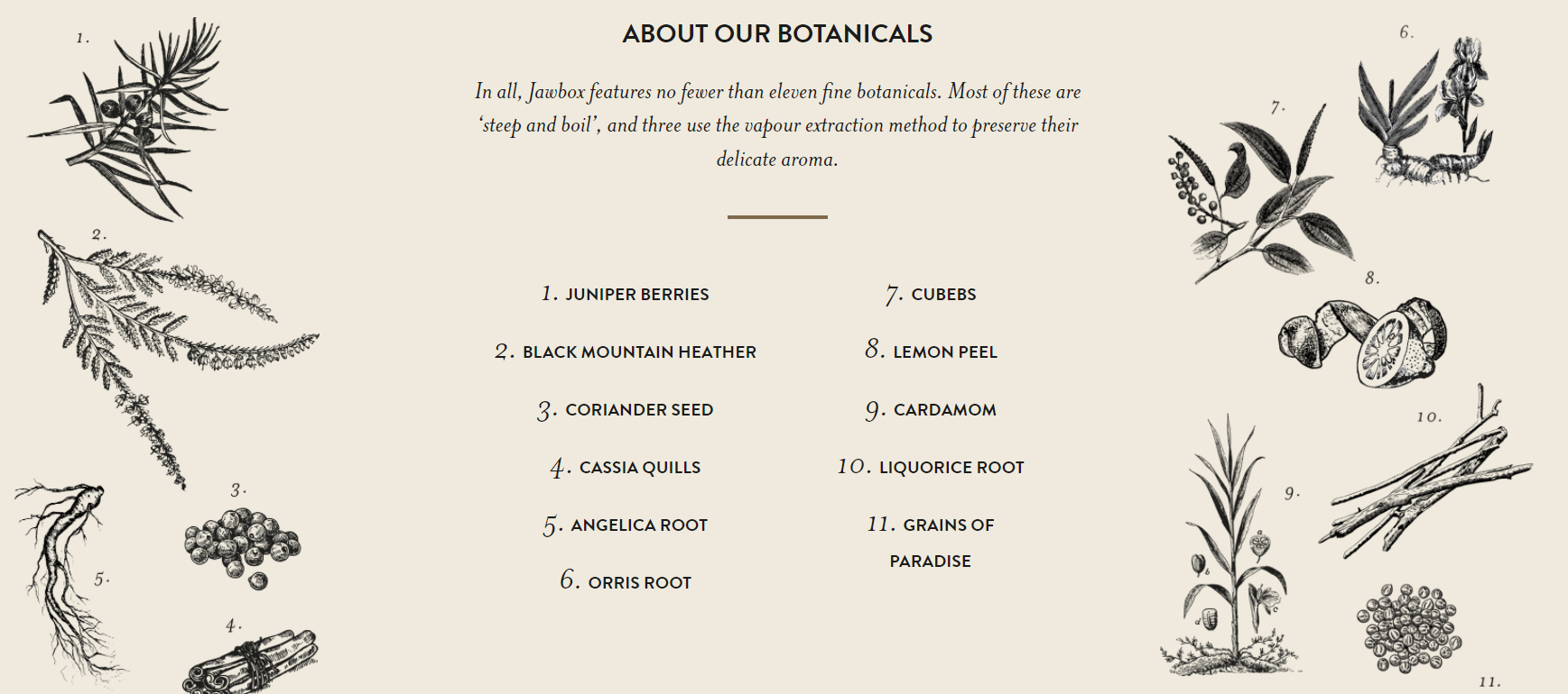 Jawbox Export Strength is triple-distilled and features a combination of 11 botanicals, many of which are distilled in the ‘steep and boil’ method while three are put through vapour extraction to preserve flavours and aromas.