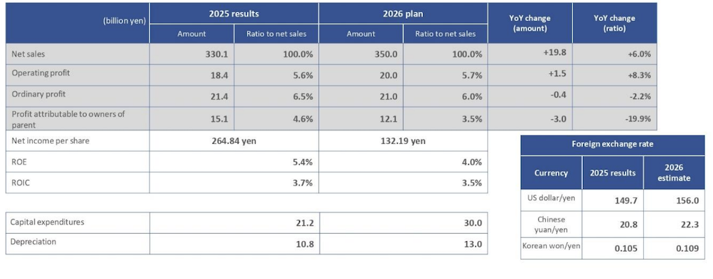 Profit attributable to owners of the parent more than doubled to ¥15.1 billion (US$97.4 million), up +101.2% from the previous year. This was driven by lower income taxes and the absence of China structural reform losses booked in 2024.