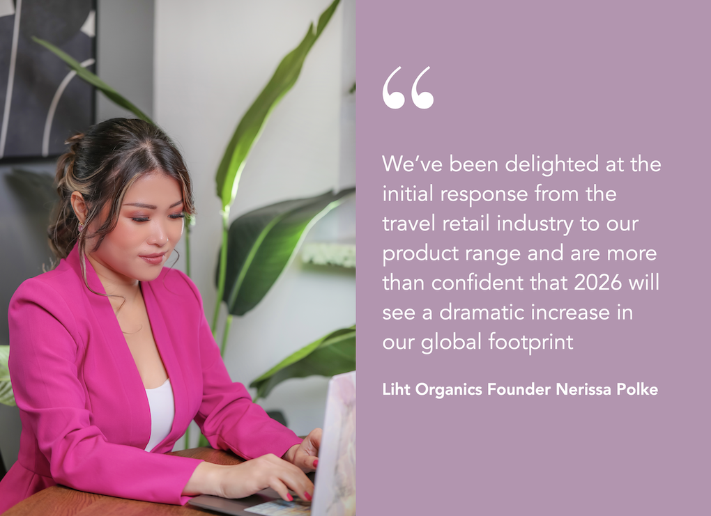 While Liht Organics has taken a strategic decision to not exhibit at key travel retail shows this year, Polke emphasises that this no way reflects on the brand’s belief in the market. “We’ve been delighted at the initial response from the travel retail industry to our product range and are more than confident that 2026 will see a dramatic increase in our global footprint,” she commented.