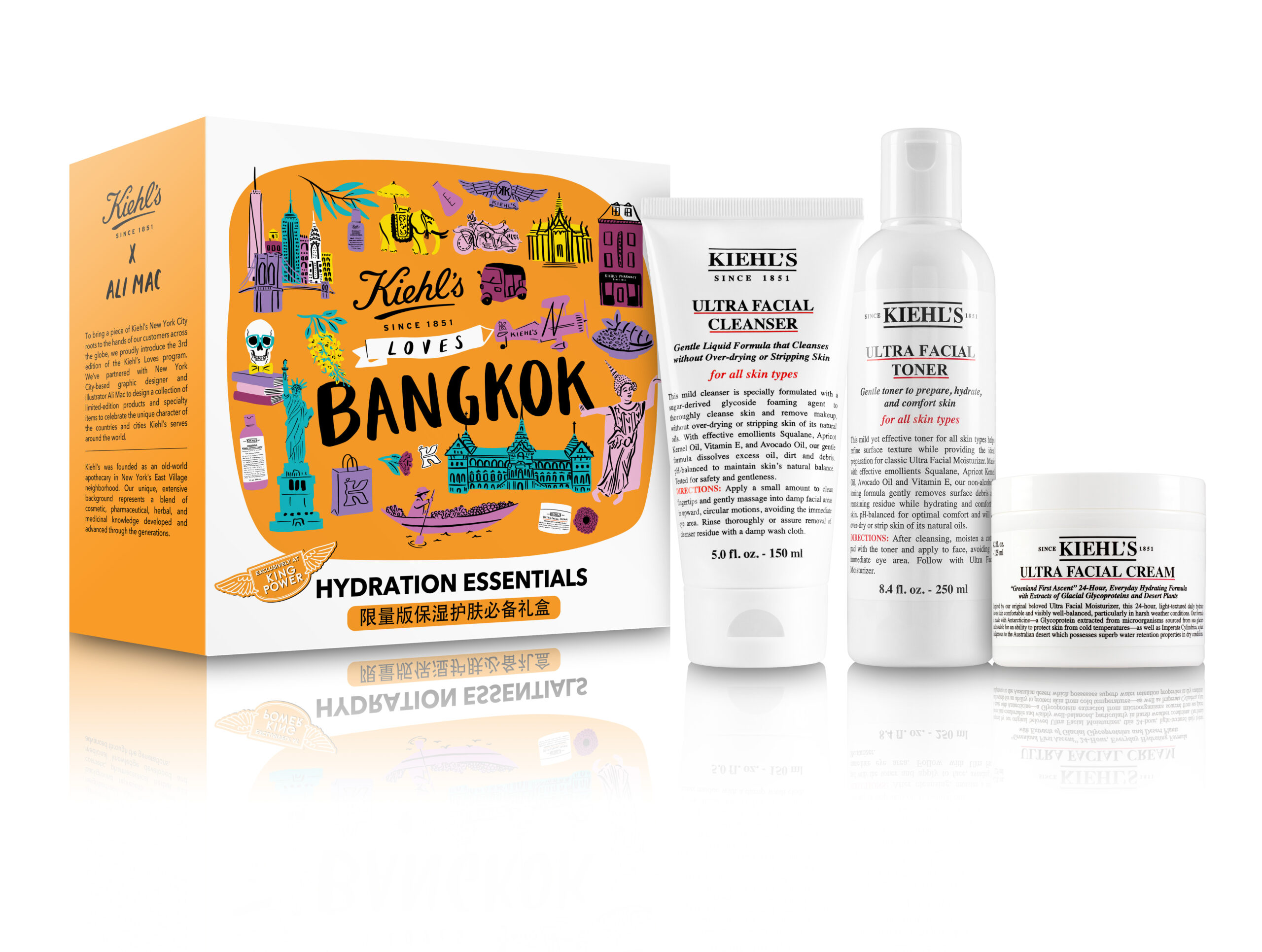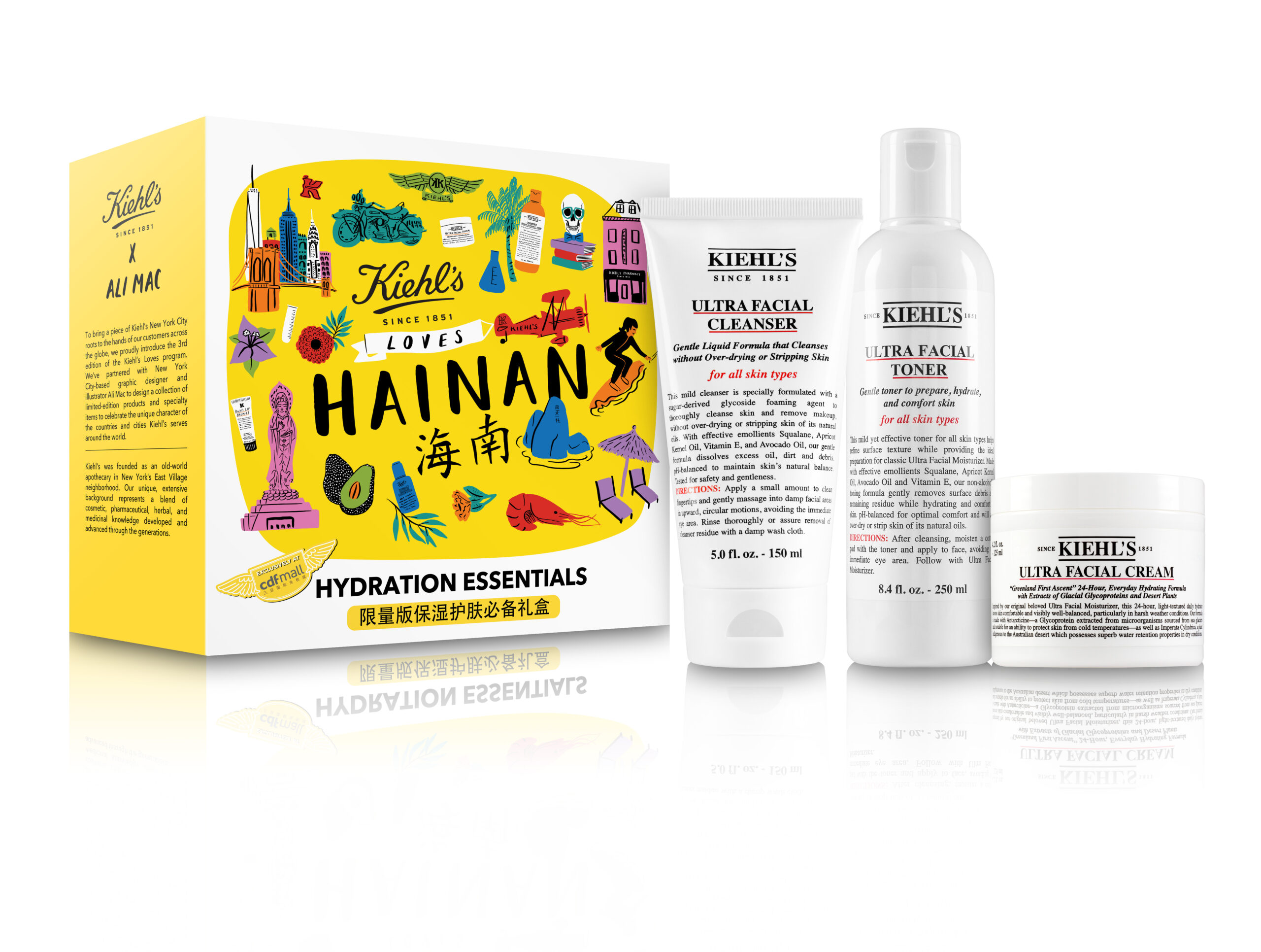 Kiehl’s has created a Hydration Essentials set exclusively for Hainan, Bangkok and Jeju, featuring the Ultra Facial Cleanser, Ultra Facial Toner and Ultra Facial Cream.