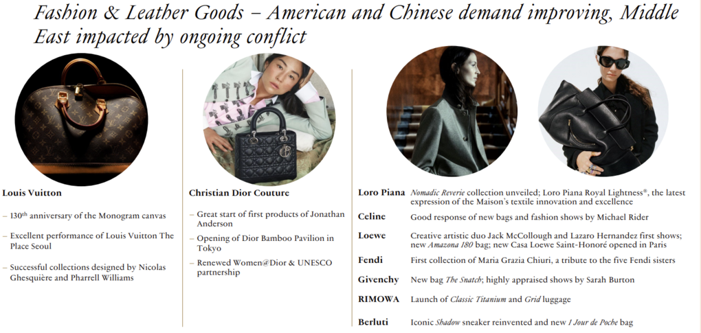 The company noted, “LVMH maintained its powerful innovative momentum and showed good resilience in a geopolitical and economic environment that remained disrupted, amplified by the conflict in the Middle East.