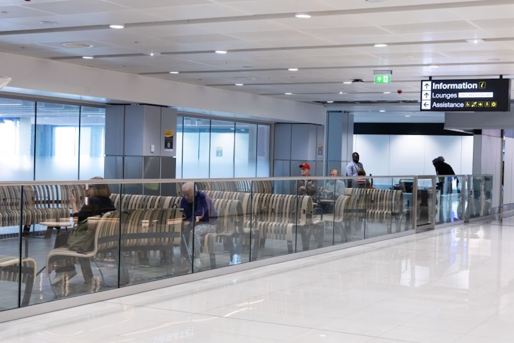 The fully staffed lounge has a choice of seating types for a capacity exceeding 100 people, a quieter semi-partitioned area, airfield views, natural light, large low-level flight information displays, charging points and a hearing loop array system.