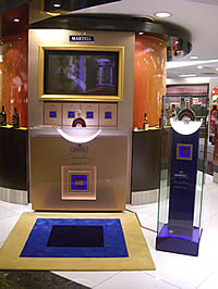 Martell in Malaysia: Création glorifiers at the Cerajaya border store (top) and at Kuala Lumpur International Airport |