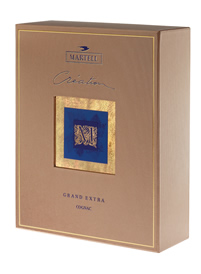 The name “˜Martell Creation Grand Extra’ depicted on the bottle is subtly displayed using gold silk-screen printing.
