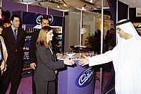 (Left) Belly dancing and fireworks at the Gala Dinner; (right) The ribbon-cutting ceremony to open Middle East Exclusive 2005 featured His Excellency Obeib Humeid Al Tayer, President of Dubai Chamber of Commerce and Industry and MEDFA President and Dubai Duty Free Managing Director Colm McLoughlin.