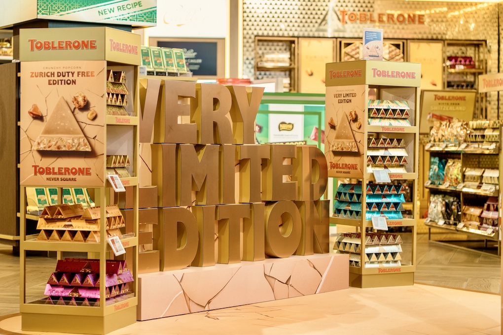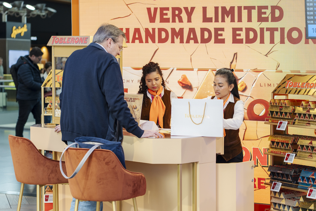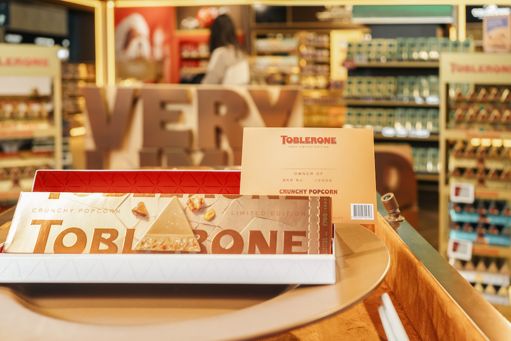 Toblerone Crunchy Popcorn is available at Zurich Airport in a strictly limited quantity of 2,000 units. The bar is being showcased via an experience-led ‘Home of Toblerone’ retail concept designed to elevate the traveller journey and reinforce the brand’s premium positioning.