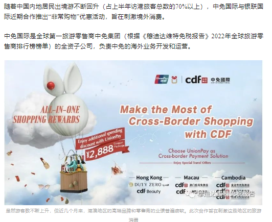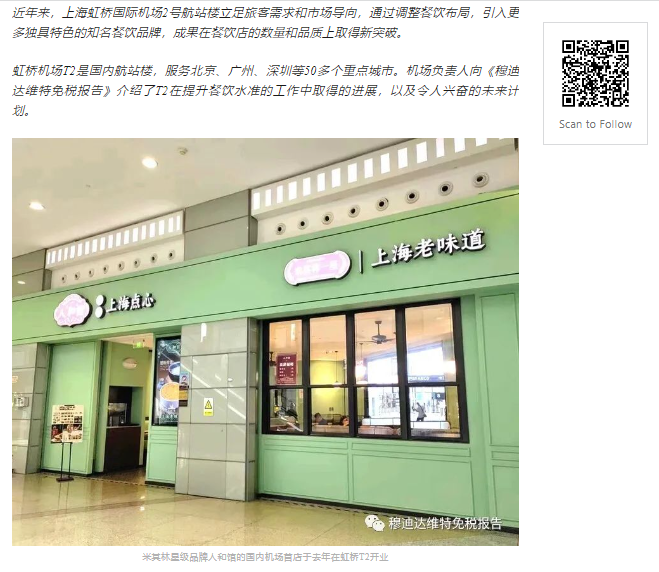 《穆迪达维特免税报告》是唯一进驻微信平台的国际旅游零售行业媒体。《穆迪达维特免税报告》微信公众号现有4,768名关注者,在现有英文平台日渐壮大的中文读者群体基础上实现更广泛触达。如需咨询英文原稿,请联系出版负责人Irene Revilla(邮箱:Irene@MoodieDavittReport.com + Yimei@MoodieDavittReport.com)