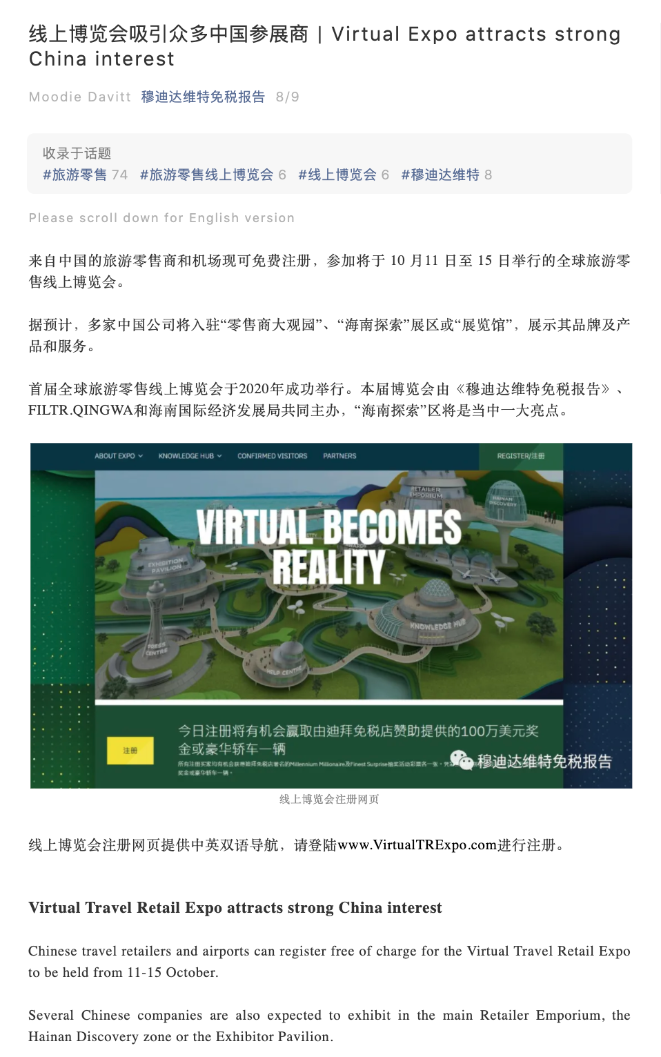 Hainan Hinews Media Co, Hainan’s leading media house and The Moodie Davitt Report’s strategic partner in Hainan, will be covering the Virtual Travel Retail Expo exhibitors and activities.