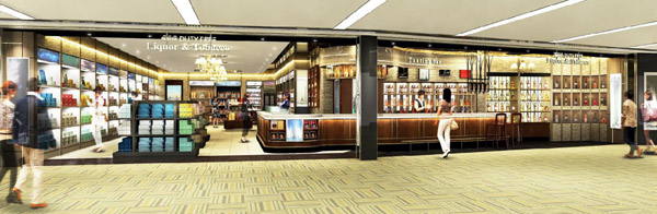 The renovated Fa-So-La Duty Free Cosmetics & Perfumery (above) and the Liquor & Tobacco store (below) |