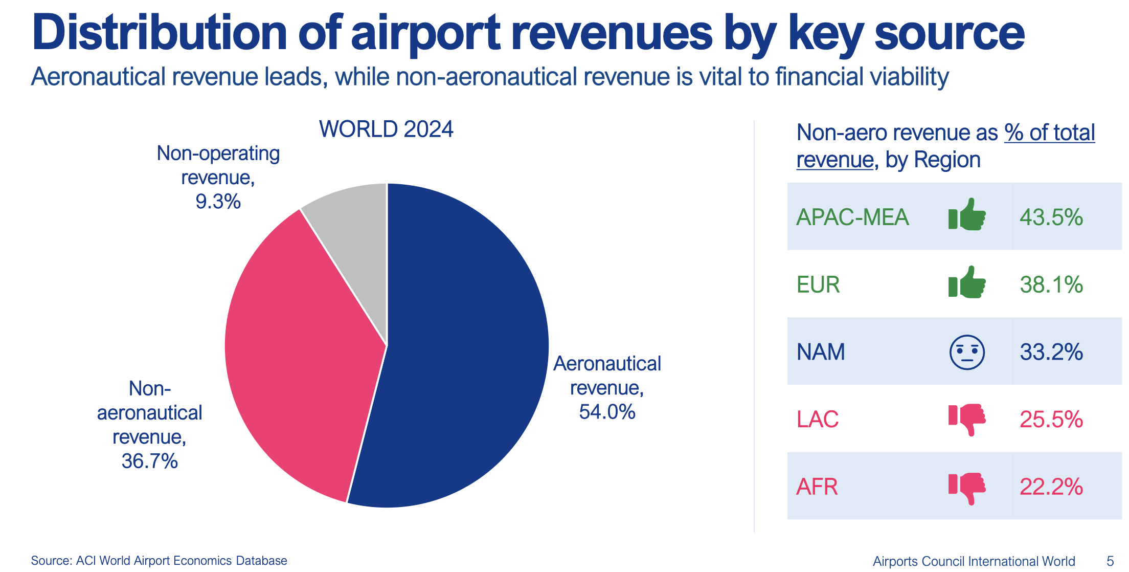 Key takeaways from the ACI World report on airport revenues, previewed at The Trinity Forum last week; below, non-aeronautical performance by region since 2017; click to enlarge