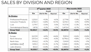 “Growth accelerated across all divisions, as the weight of new launches further increased in the third quarter fuelled by our Beauty Stimulus Plan.