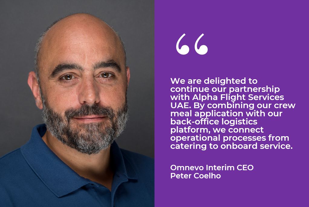Omnevo Interim CEO Peter Coelho said: “We are delighted to continue our partnership with Alpha Flight Services UAE. By combining our crew meal application with our back-office logistics platform, we connect operational processes from catering to onboard service.