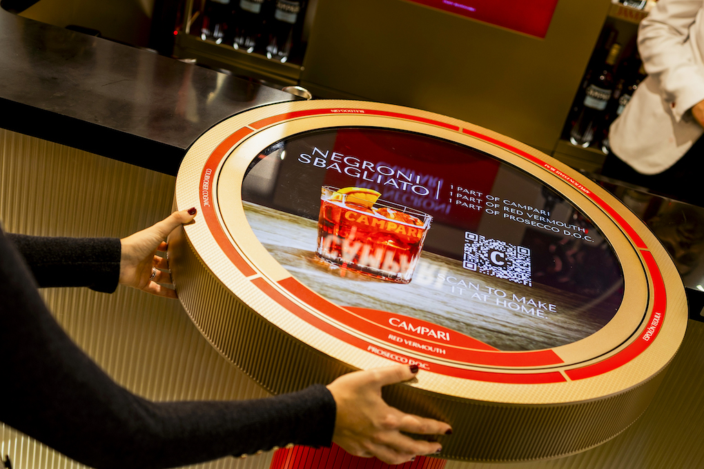 A Digital Negroni Wheel triggers bespoke digital animations depicting the key ingredients and flavours of each cocktail, while a Camparino Bartender prepares and serves the selected twist.