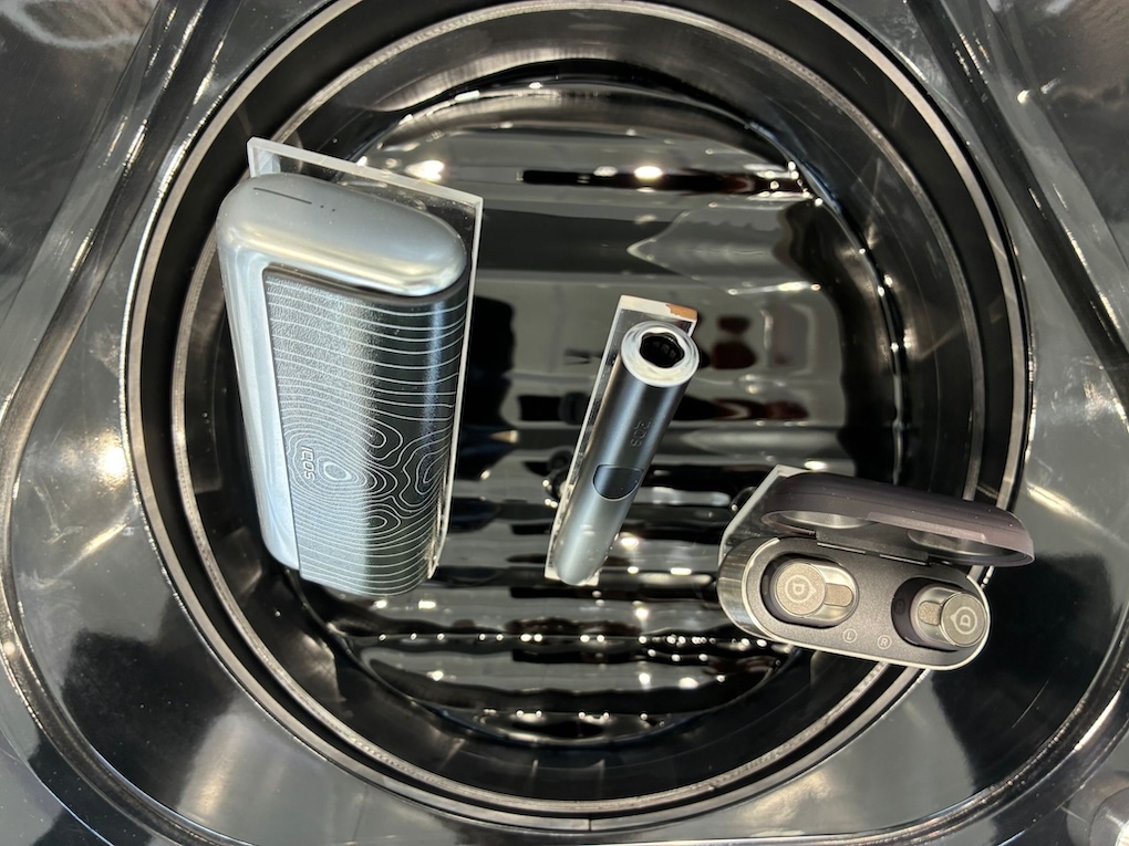 “This experience generated a distinct aesthetic language, movement, light and fluidity, which was then translated into design elements applied across both the IQOS device and Devialet earbuds.
