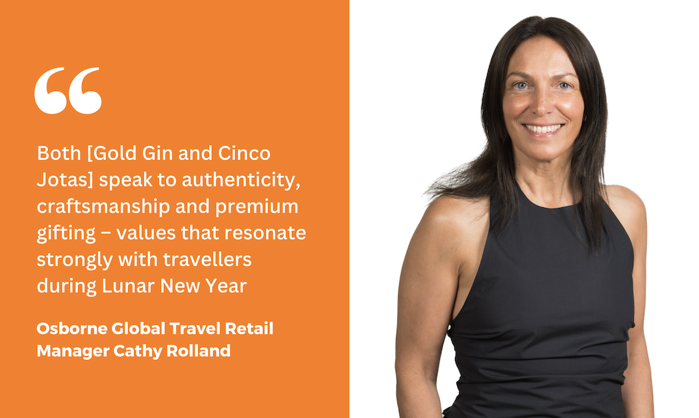 Osborne Global Travel Retail Manager Cathy Rolland said, “Lunar New Year is an extremely important and dynamic period for travel retail, and Gold Gin is perfectly positioned to resonate with travellers seeking something special – whether for gifting or self-indulgence.