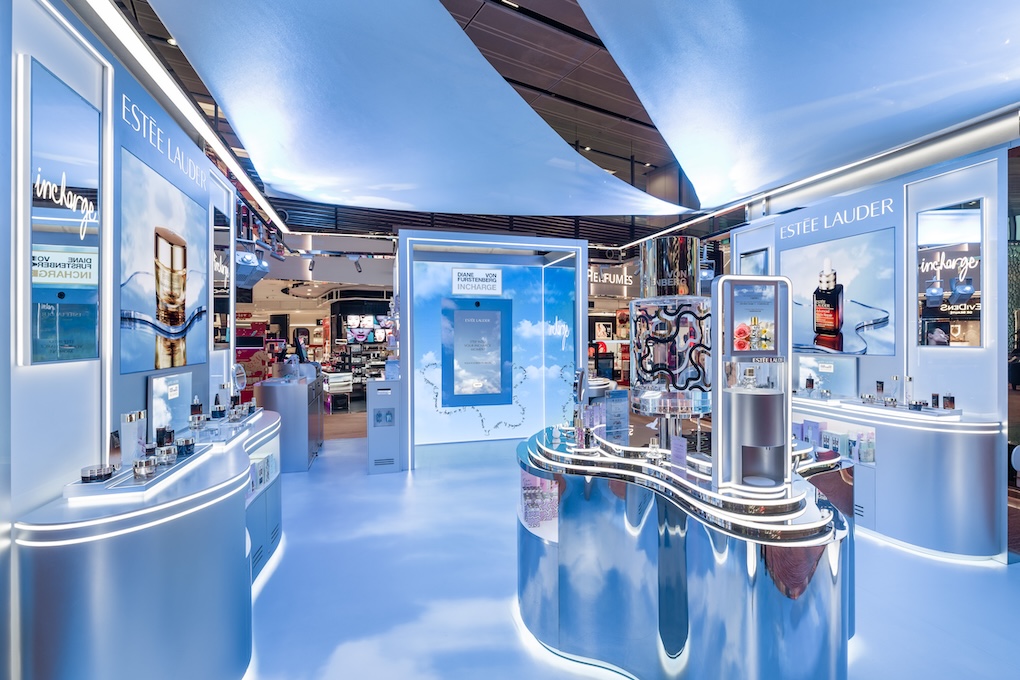 The multi-sensory activation is running until 9 April in Terminal 1 Departures. The space integrates water and mirror elements, a fabric canopy sky projector and scent diffusers to highlight the new water-based InCharge Essence d’Eau fragrance. The range also features the Multi-Use Sculpting Blush Stick and Glossy Lip Oils.