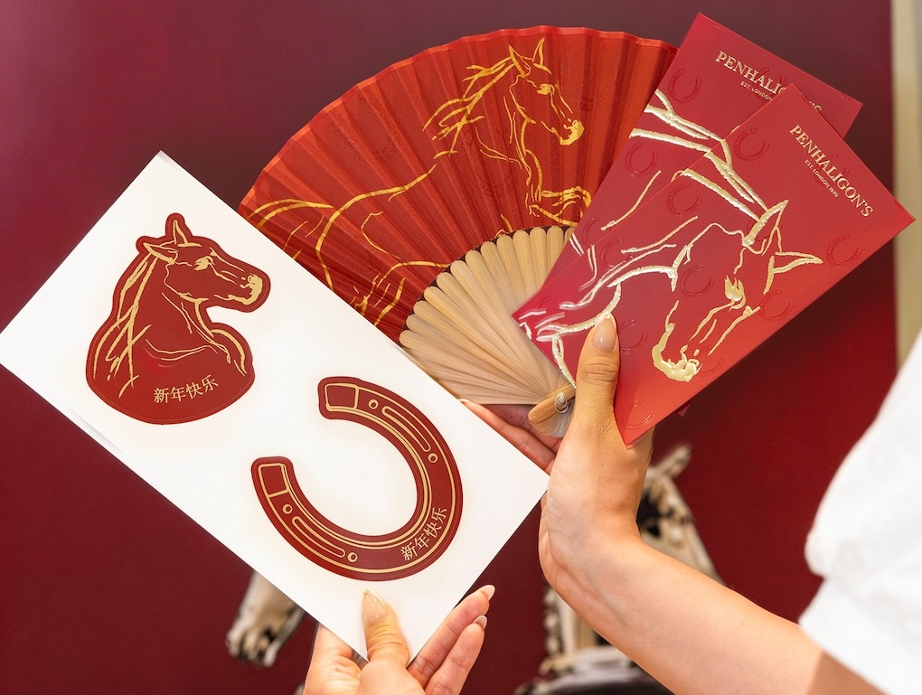 The set featured the Fortuitous Finley fragrance from Penhaligon’s Portraits range. Centred on themes of success, forward momentum and confidence, attributes closely aligned with the Year of the Horse, the scent features pistachio, violet leaf and leather notes.