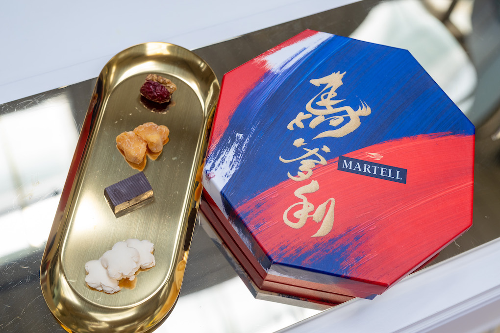 The pop-up offers guided tastings of Martell Cordon Bleu and Martell Noblige Noir Year of the Horse limited editions. Samples are complemented by a curated candy box containing dried fruits, hazelnut chocolate balls and peanut candy, intended to enhance the Cognac flavours.