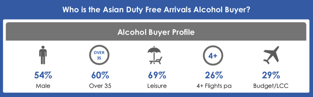 Much like the wider Asian arrivals business, a high number of customers plan to make an alcohol purchase; the research agency has reported that 75% of customers know they will make an alcohol purchase before entering the category. However, only 30% of those planning to purchase know the exact item they will buy.