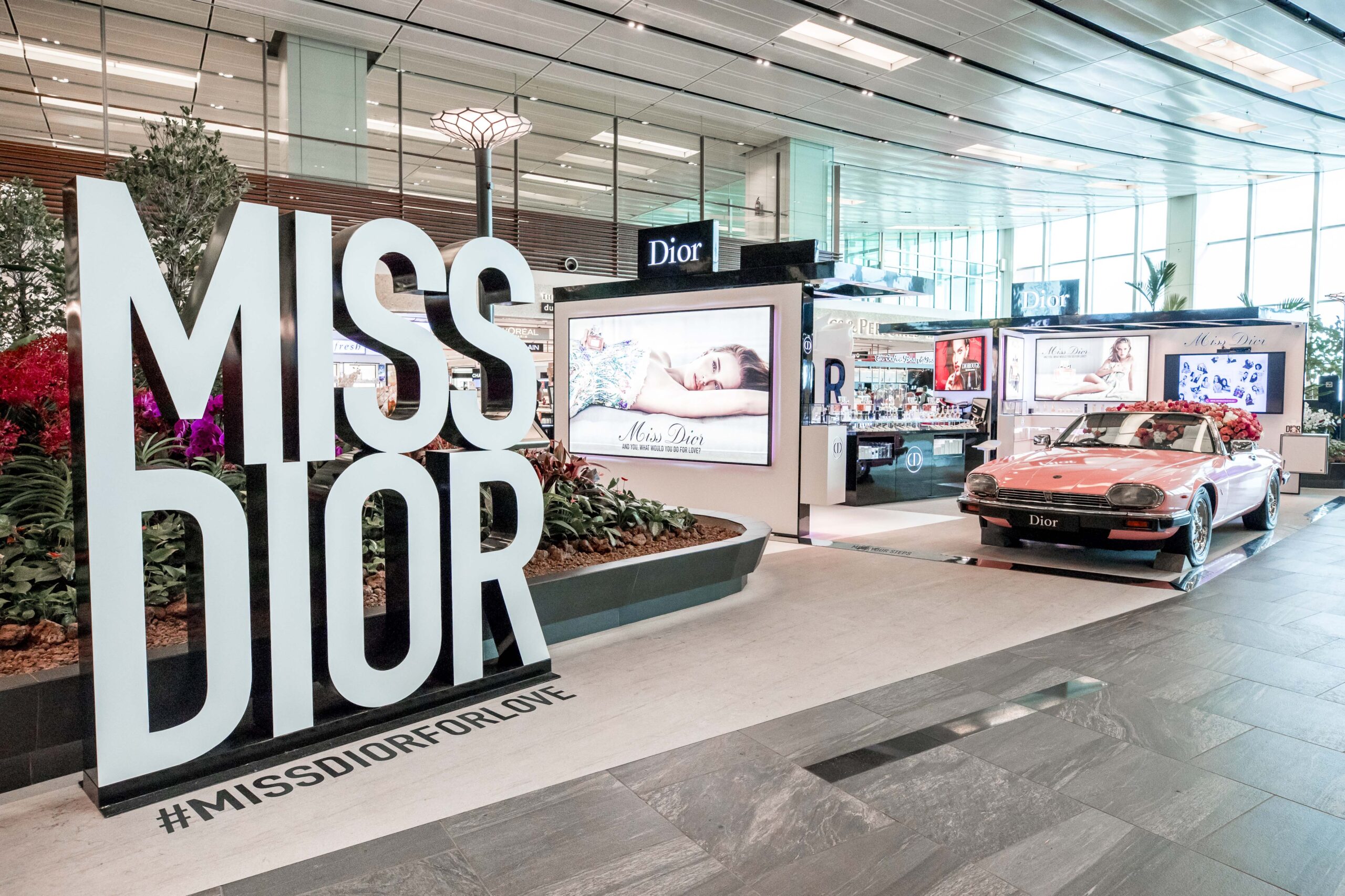 The pop-up outpost, titled Miss Dior Exceptional, takes centre stage in Terminal 1’s departure transit hall.