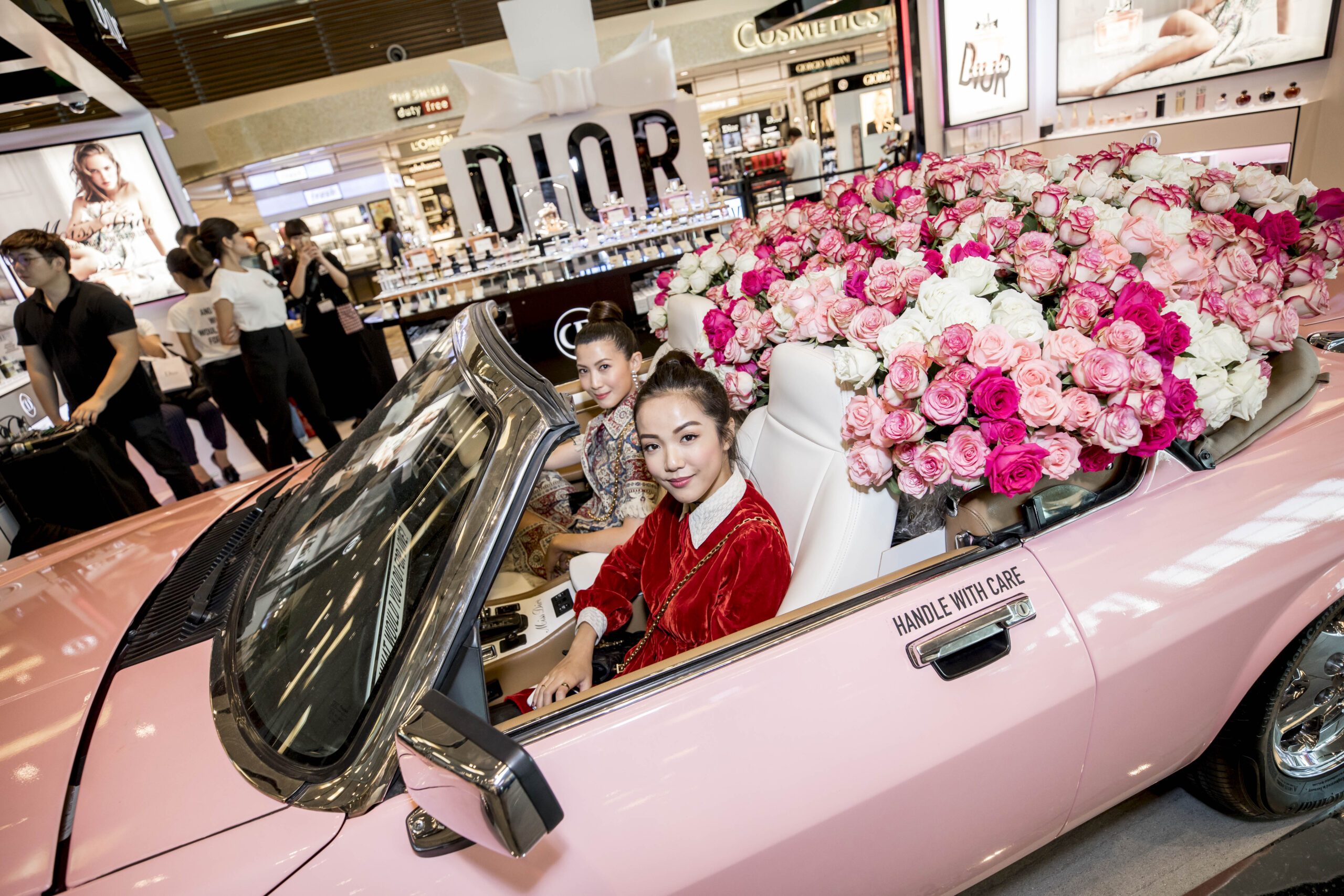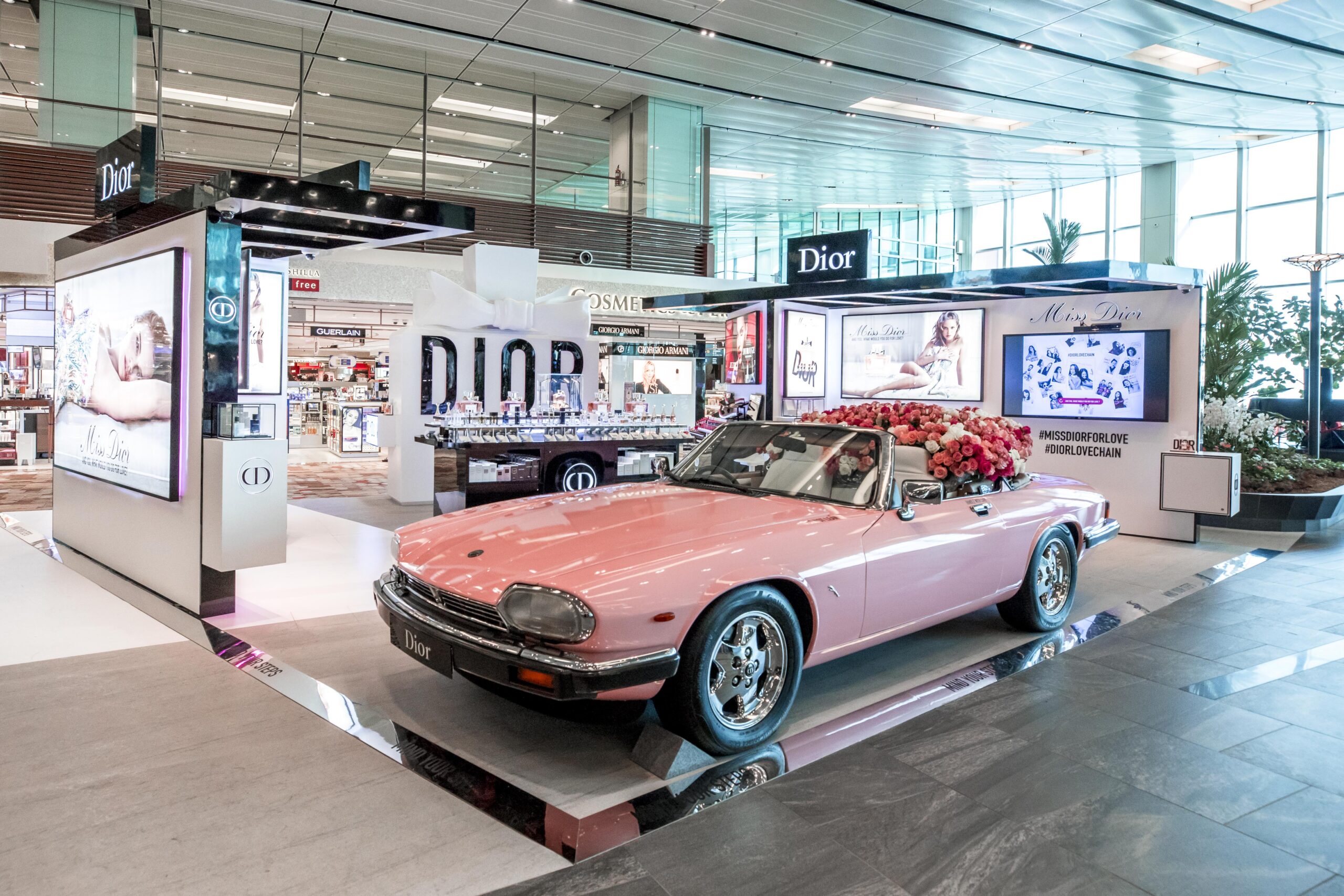 The outpost allows passengers to view a pink Miss Dior Jaguar car, shown in the upcoming campaign featuring actress Natalie Portman. This luxury convertible replica – the only one of its kind – will not be available anywhere else worldwide, offering travellers the chance to emulate the experience of starring in a Dior commercial and bring home a photo memento of themselves in the driver’s seat.