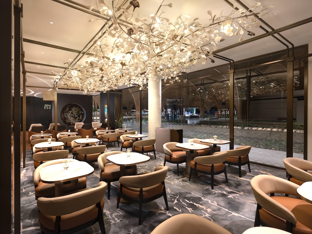 The lounge – which boasts an extensive dining zone – combines modern comfort with Cambodian cultural design. It features artwork by renowned artist, architect, interior and landscape designer and sustainability advocate Bill Bensley.