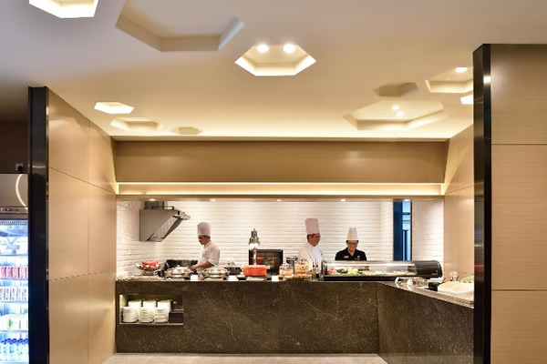 Plaza Premium said it had placed “a great emphasis” on food & beverage. The new lounge introduces live cooking stations, where guests can watch chefs prepare dishes upon request. Signature dishes include Singapore laksa, Singapore chicken rice and The Green Market Temaki.
