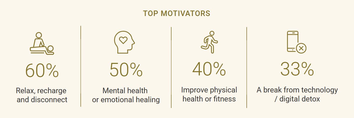 APAC respondents recorded the highest interest in wellness travel, with 61% motivated by the desire to relax, recharge and disconnect, followed by improving mental (52%) and physical (39%) wellbeing.