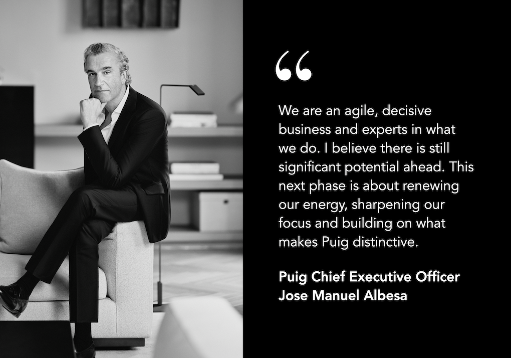 “We are an agile, decisive business and experts in what we do. I believe there is still significant potential ahead. This next phase is about renewing our energy, sharpening our focus and building on what makes Puig distinctive and I look forward to continuing this journey together with Marc Puig and all of our teams.”