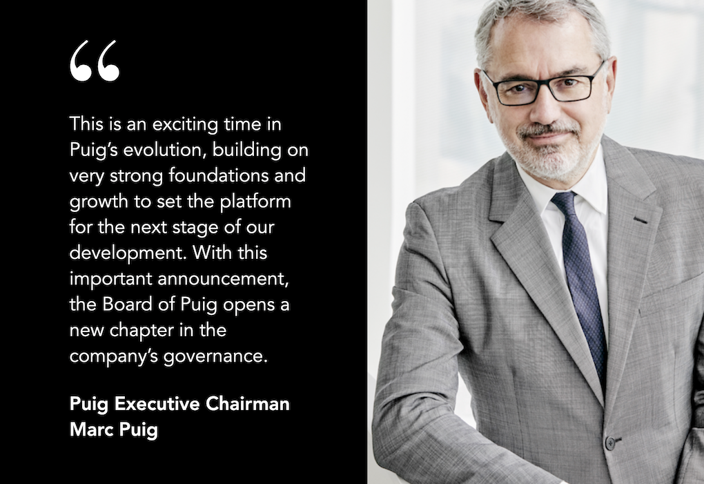 Marc Puig said: “This is an exciting time in Puig’s evolution, building on very strong foundations and growth to set the platform for the next stage of our development. With this important announcement, the Board of Puig opens a new chapter in the company’s governance.