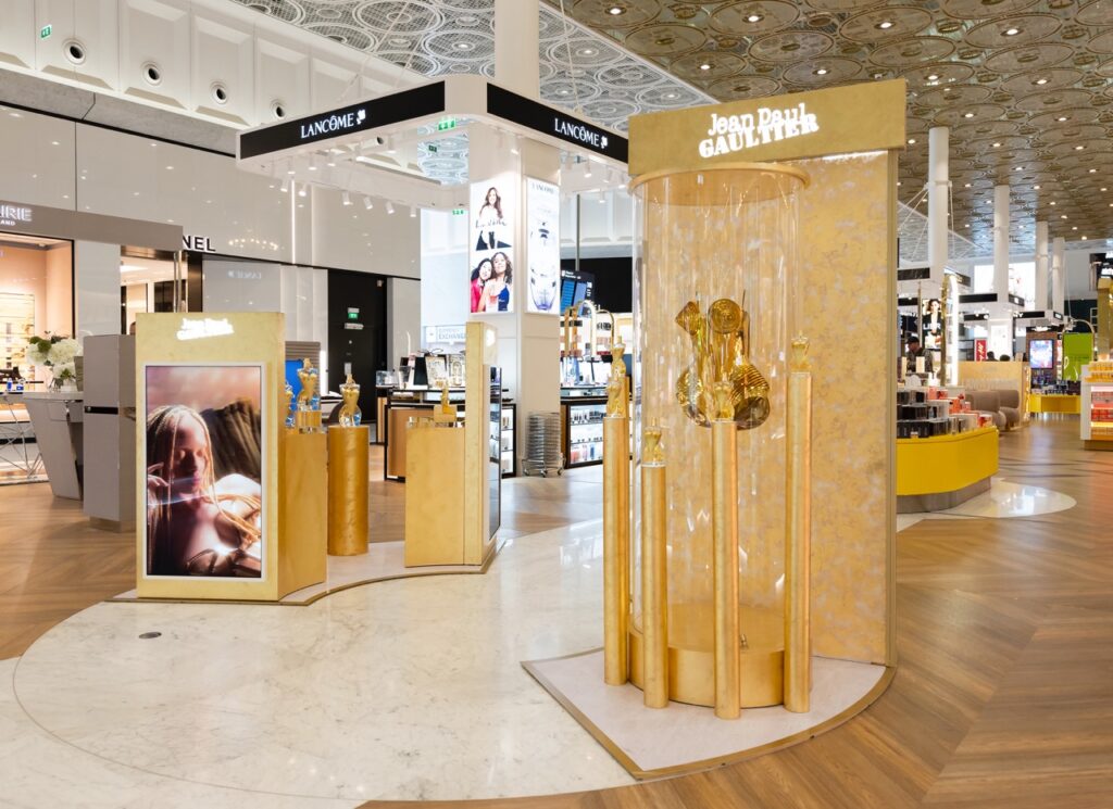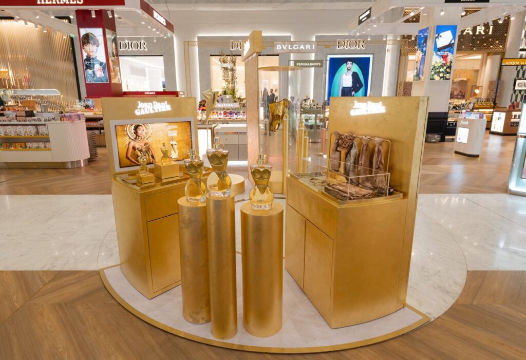 The eye-catching museum animation is running for one month and manned by two Jean Paul Gaultier historians who are on-hand to help travellers discover the brand’s fragrance history.
