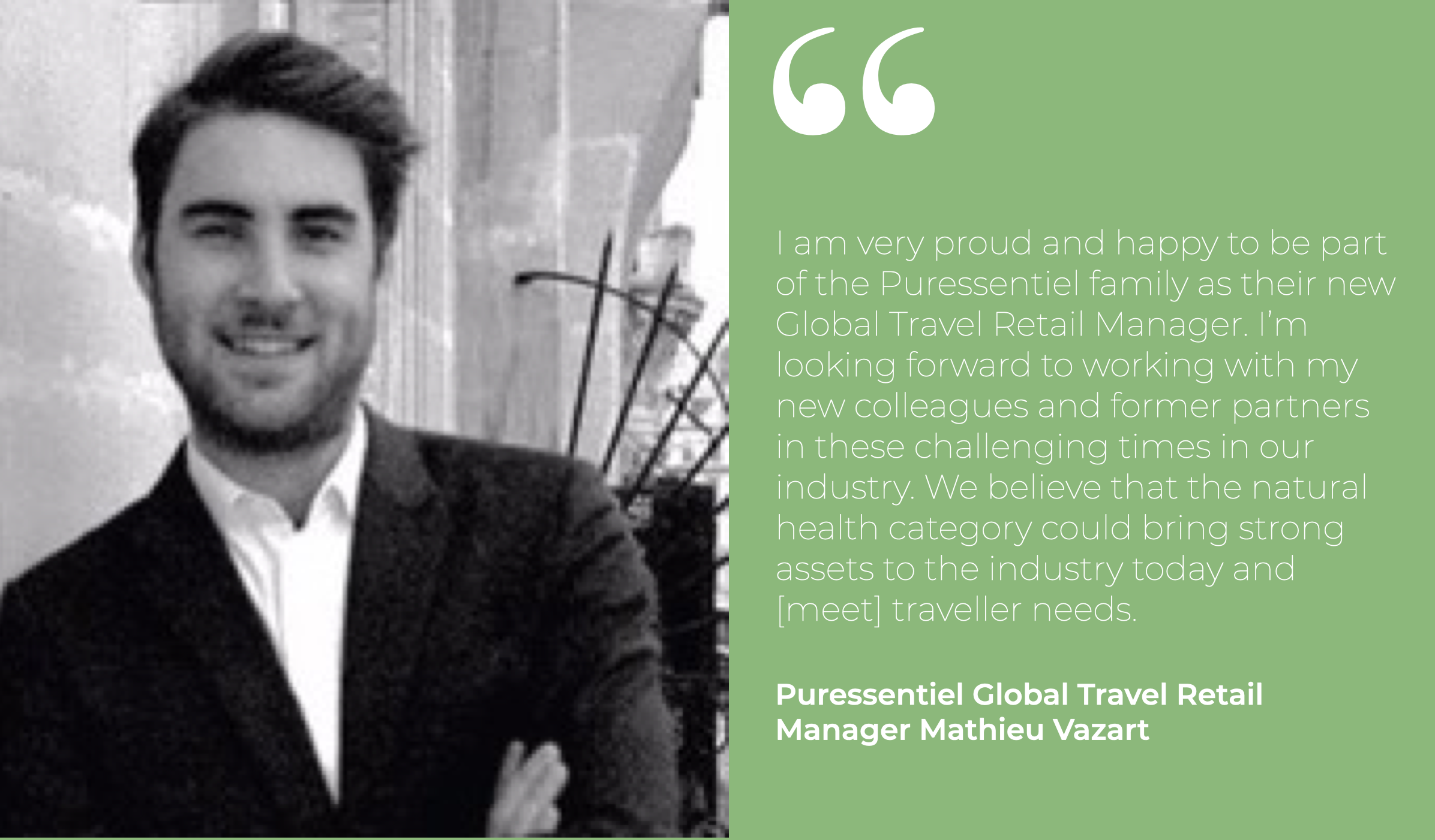 Puressentiel Executive Director Rocco Pacchioni commented, “We are committed to support the travel retail industry. Our ambition for the channel is important and we trust Mathieu will play a crucial role in this transition period.”